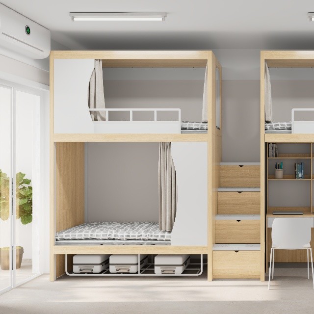 Modern Desain Bunk Bed untuk asrama pemuda dengan pedoman perakitan yang mudah