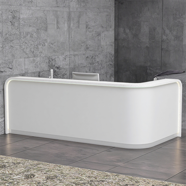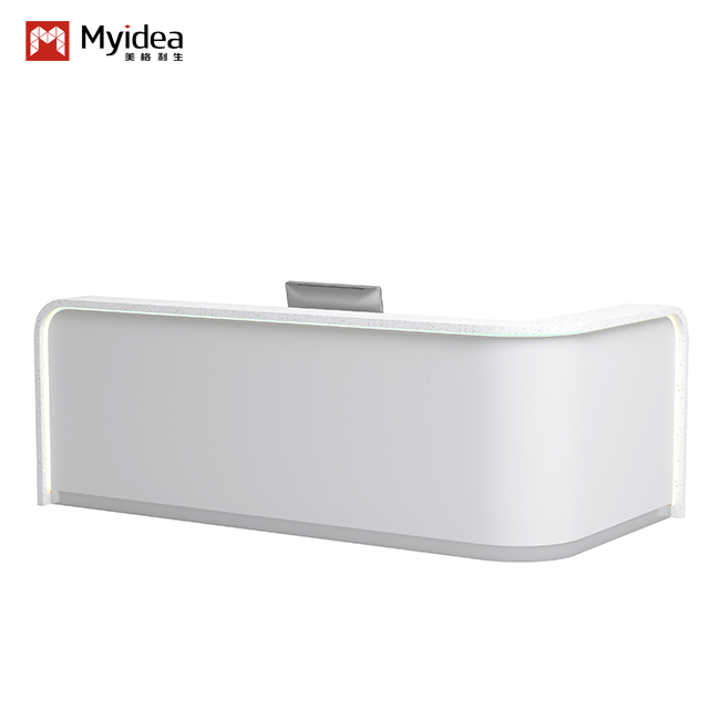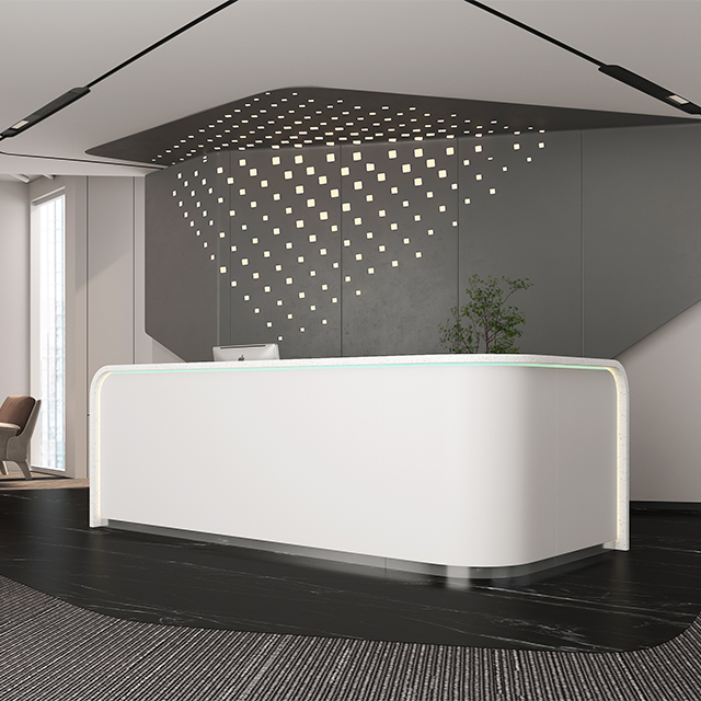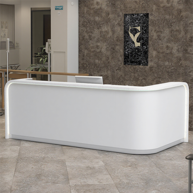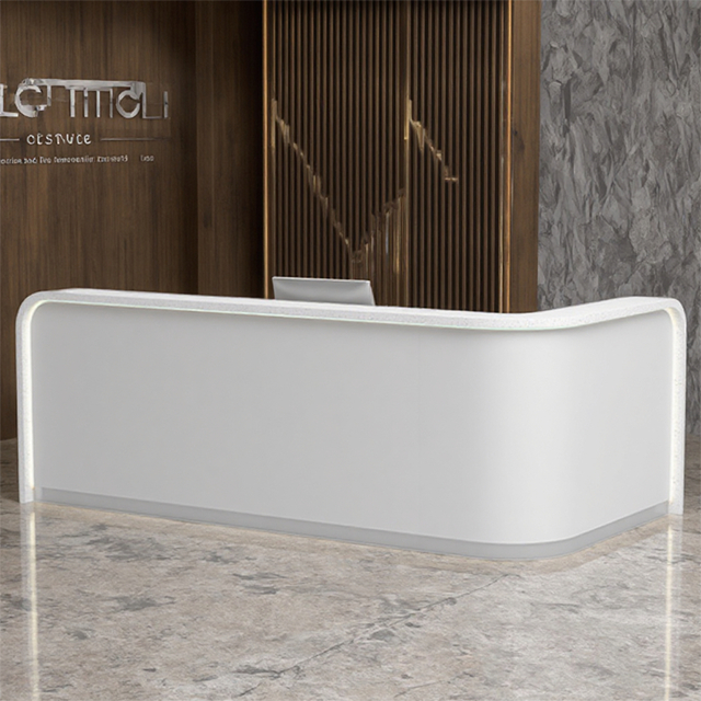 Meja Depan Konter Batu Buatan Tekstur Perusahaan Hotel Meja Resepsionis Meja Layanan Lengkung Sederhana Modern dan Bergaya