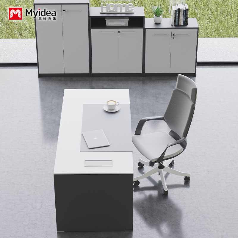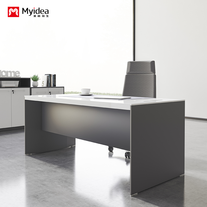 meja kantor proses cat baking putih kustomisasi, meja bos modern dan modis, perabot kantor, meja komputer