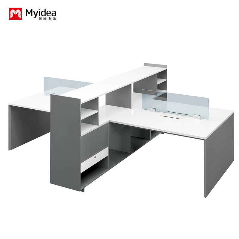 meja penyimpanan kapasitas besar kustomisasi dengan kabinet, desain meja komputer kantor 2 orang 4 orang, partisi layar, meja staf