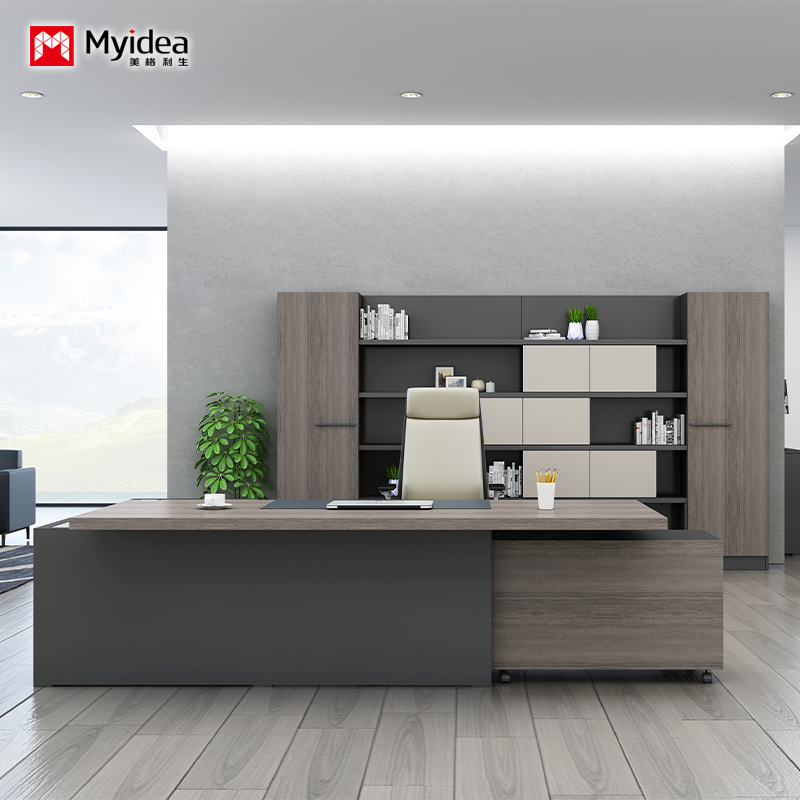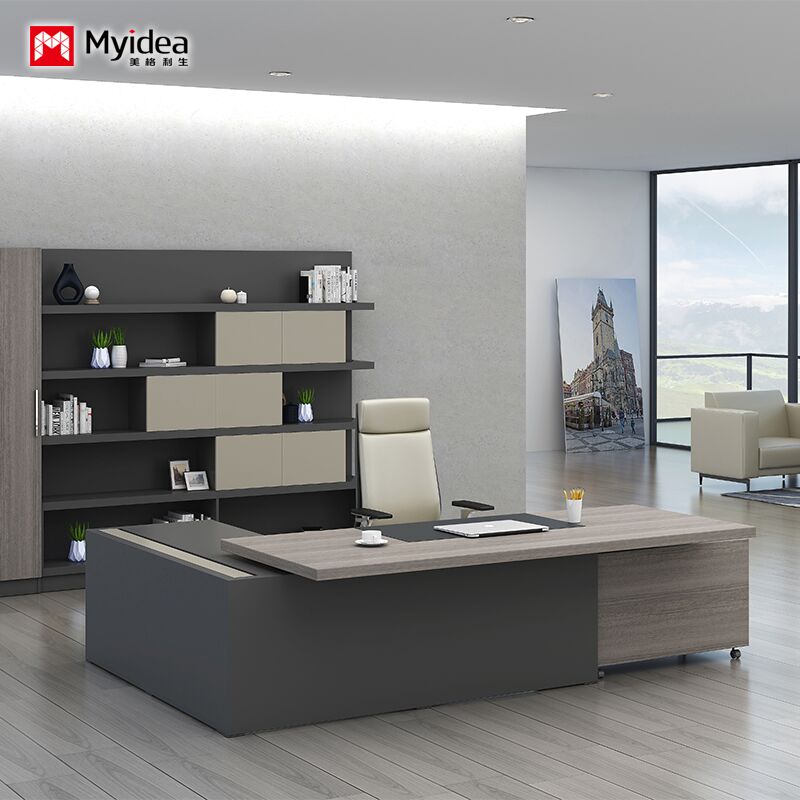 penyesuaian Kantor Manajer Pengawas Meja berbentuk L Kantor independen Meja dengan Kabinet Disembunyikan Wire Box Manajer Meja