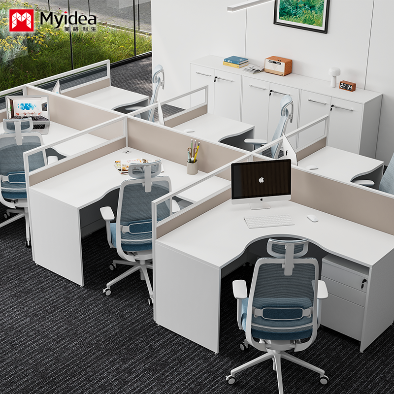 Foshan Grosir Individu Tunggal Bentuk L Staff Warna Cahaya Slot Kartu Layar Simple Modern Tabel dan kursi kombinasi