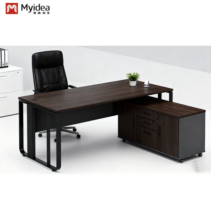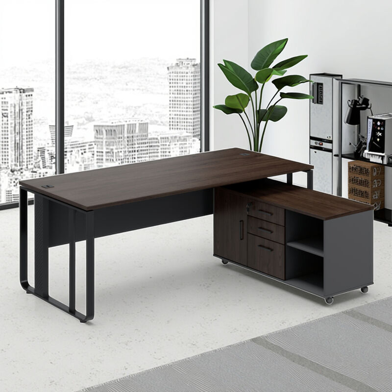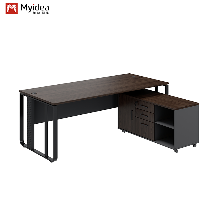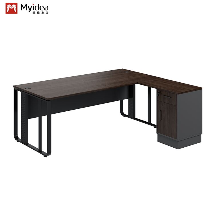 Meja Eksekutif Bos Mewah Kontemporer dengan Desain Kaki Baja dan Sub-kabinet Penyimpanan untuk Bangunan Kantor