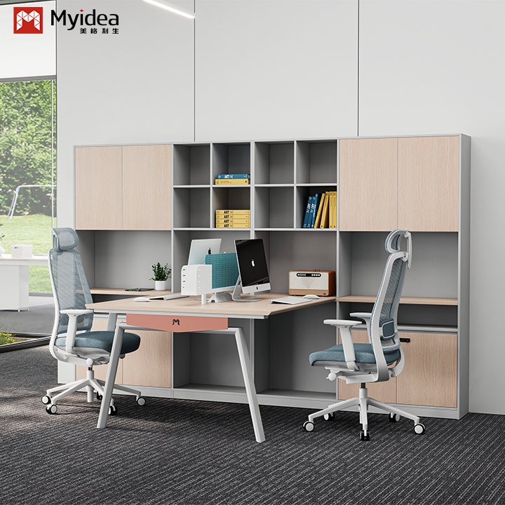 Meja modern yang ramah lingkungan kayu dengan layar kain kaki baja lemari penyimpanan besar perabot kantor berdiri sendiri