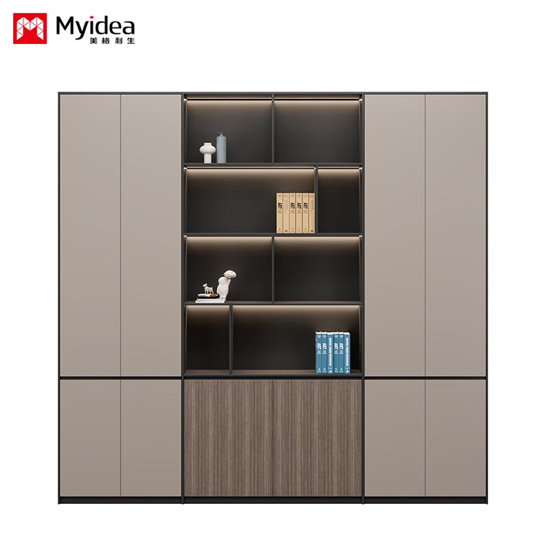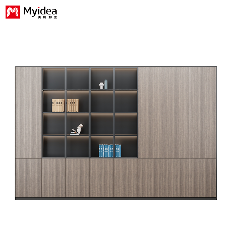 Glass Door Filing Cabinet, Office Back Cabinet with Light Strip Filing Cabinet